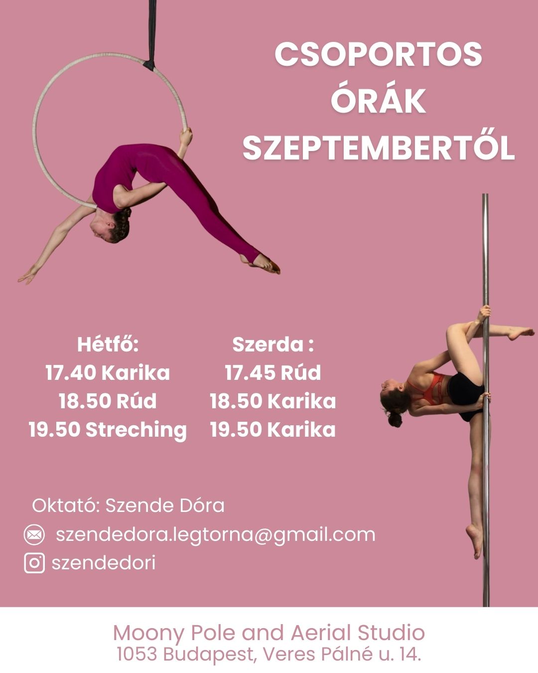 Örömmel jelentjük be, hogy 2025. szeptemberétől már csoportos órákon is részt vehettek a Moony rúd- és légtorna studióban.